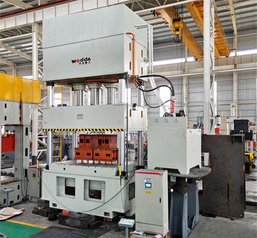 1000噸液壓機是山東沃達重工機床有限公司為某汽車零😍部件生産廠家定做的液壓拉伸機,本機采用🔞四柱多缸設計結構🈲,另外🥰為方便操作者更換模具可選配移動工作台裝置,為得到較好的拉伸效果,工作台下置液壓墊裝置,脫模效率高,多點頂出,有🌂效的保護工㊙️件不受損。