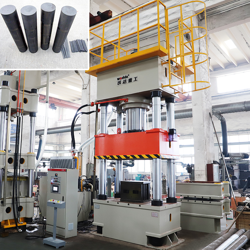 山東沃達重工研發、生産的這款630噸石墨碳棒成型液壓機可以生産高度在550mm以内,直徑在350mm之内的各種規格的石墨碳棒。這款石墨碳棒生産設備的特點有: