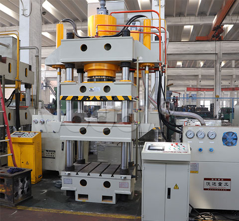 沃達重工,高新技術企業,液壓機生産廠家,ISO9001質量管理體系和歐盟CE認證企業,榮獲多項國家專利。500噸四㊙️梁四柱液壓機的主體,由各種功能的液壓缸、立柱和橫梁組成;電腦控制櫃是用來控制閥塊的,由各種功能的電器元件組成;液壓泵站是用🚩來控制油路流向的,由油箱、泵、閥、控溫組件、過濾器組件等組🔴成。通過更換不同模具可以生産出不同的産💁品,能真正實現一機多用的效果。
